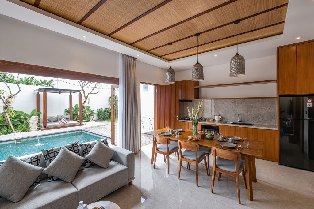 Step into our multipurpose cozy corner Beji Kitchen and Lobby, nestled inside the Taman Seminyak Suites.
